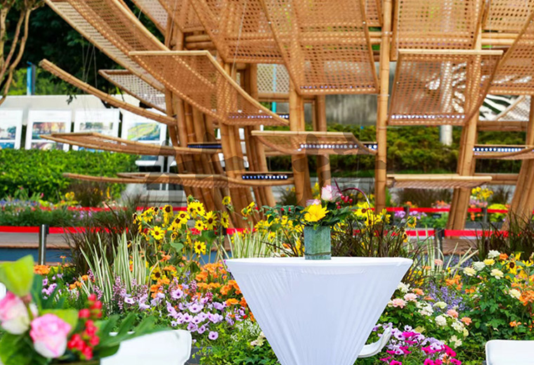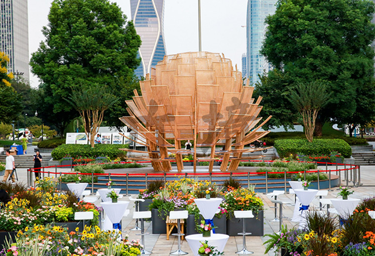 亚洲花卉主题园位于钱江世纪城的钱江世纪公园内,与钱江新城隔江而望。入口在平澜路,占地面积约28000平方米,共汇集了200多种花卉品种。其中一处景观种子广场由竹境公司负责深化施工,种子广场像一颗竹编的“巨型松果”,松果的每叶鳞片代表一个亚洲国家,鳞片彼此攒聚紧抱,正如亚洲各国团结一致,祈盼亚运友谊地久天长。