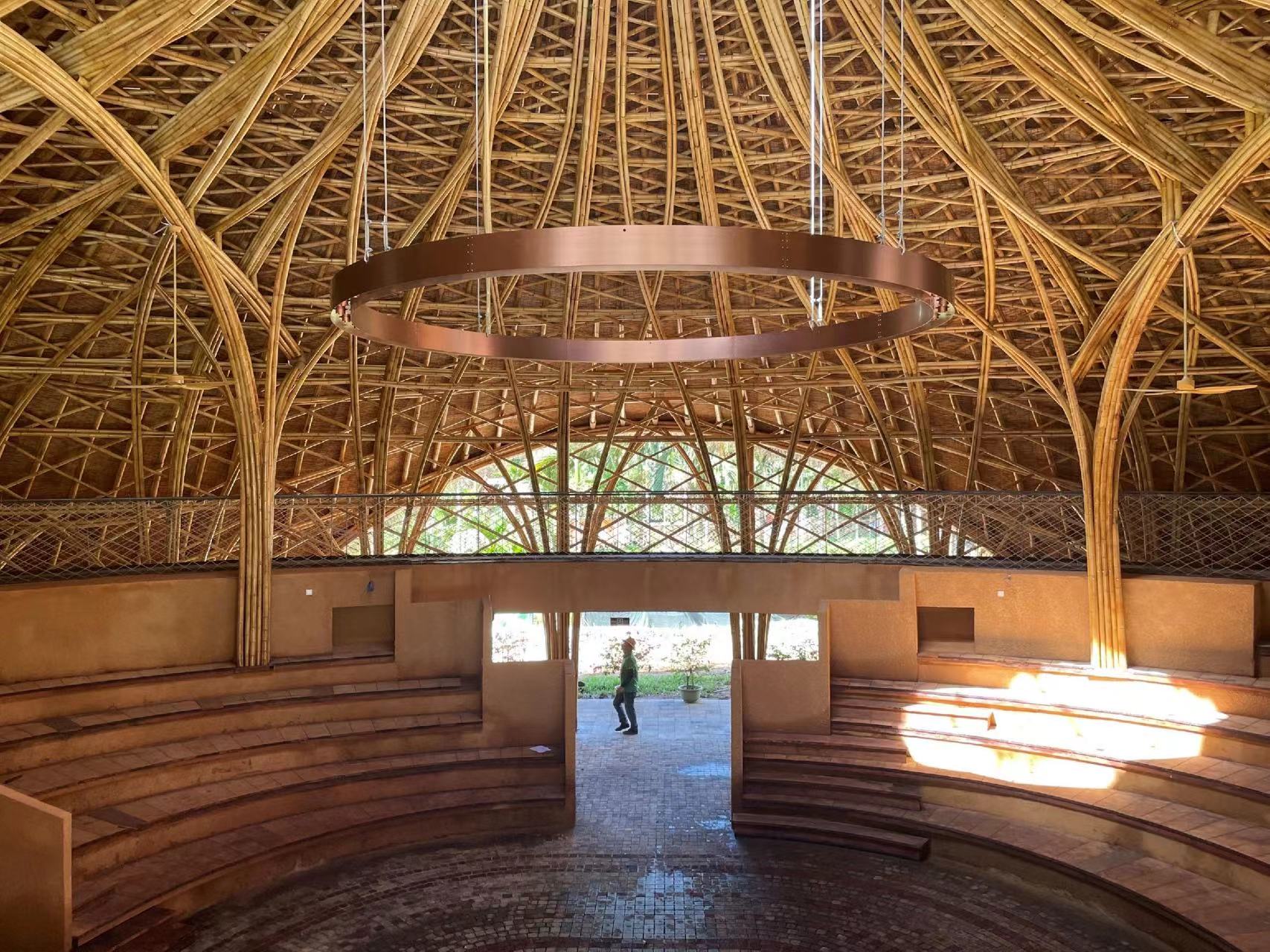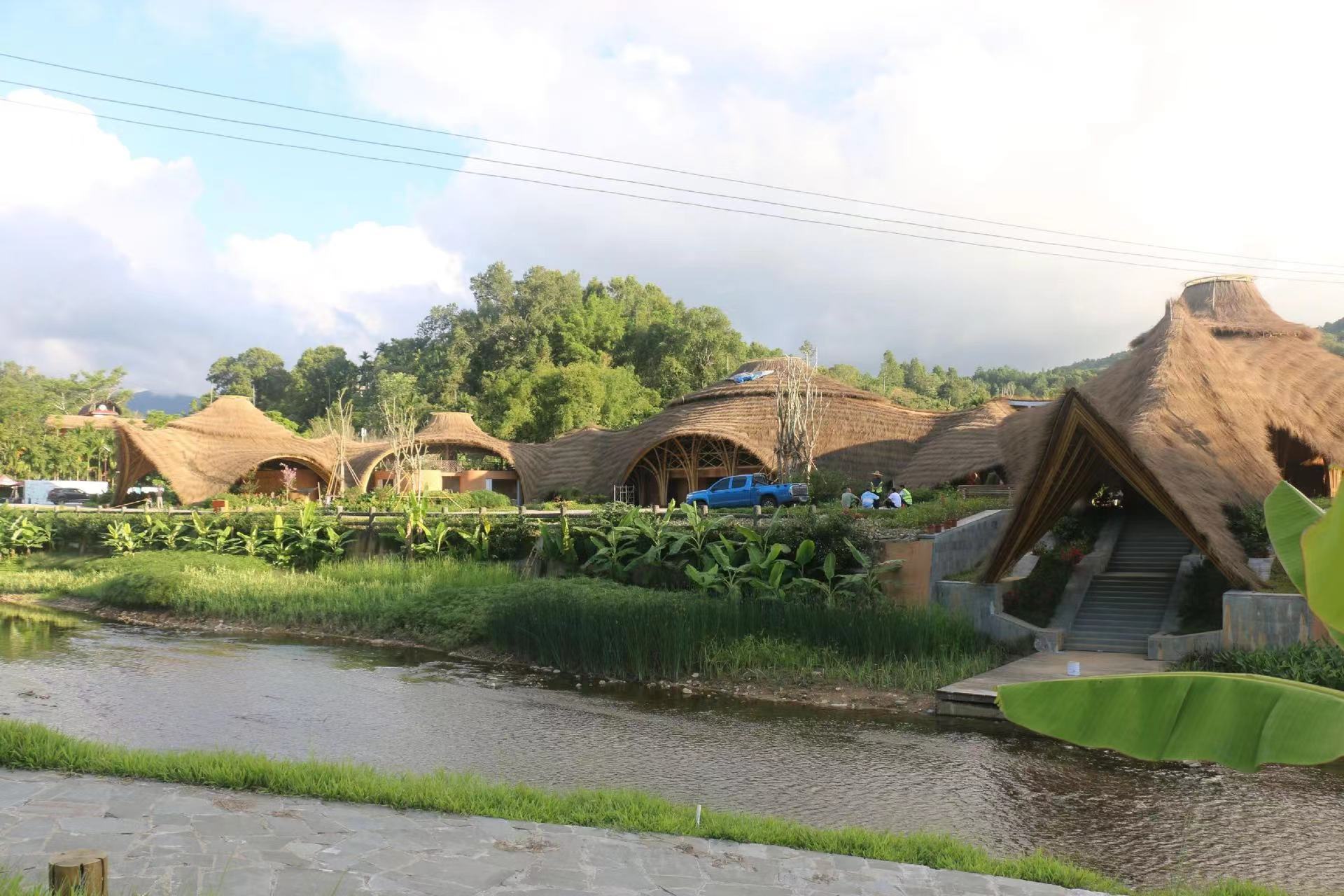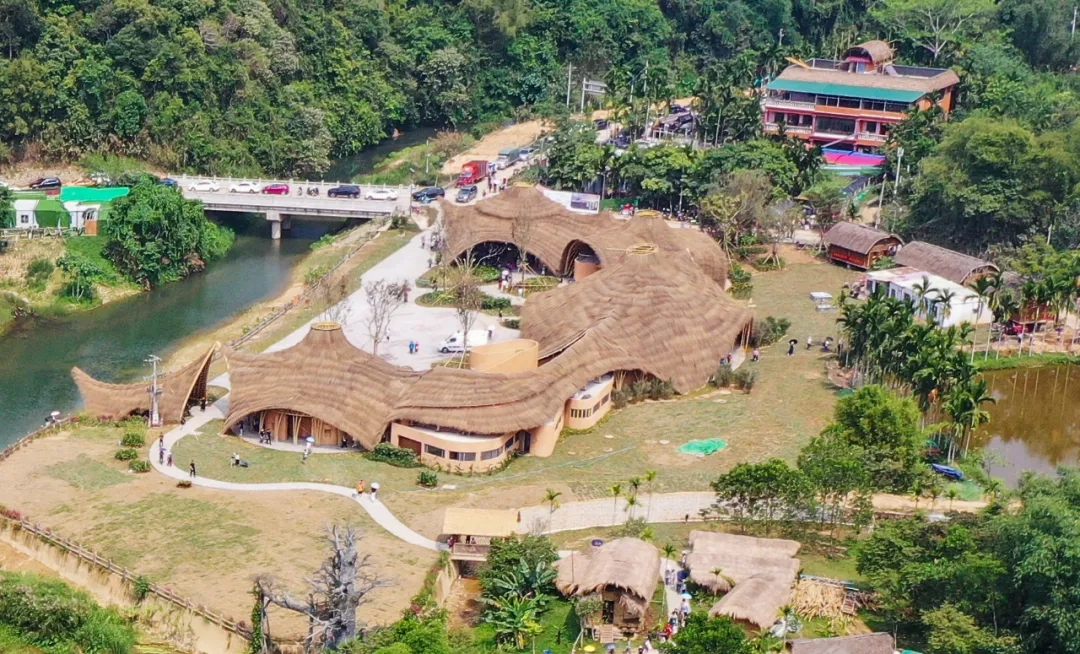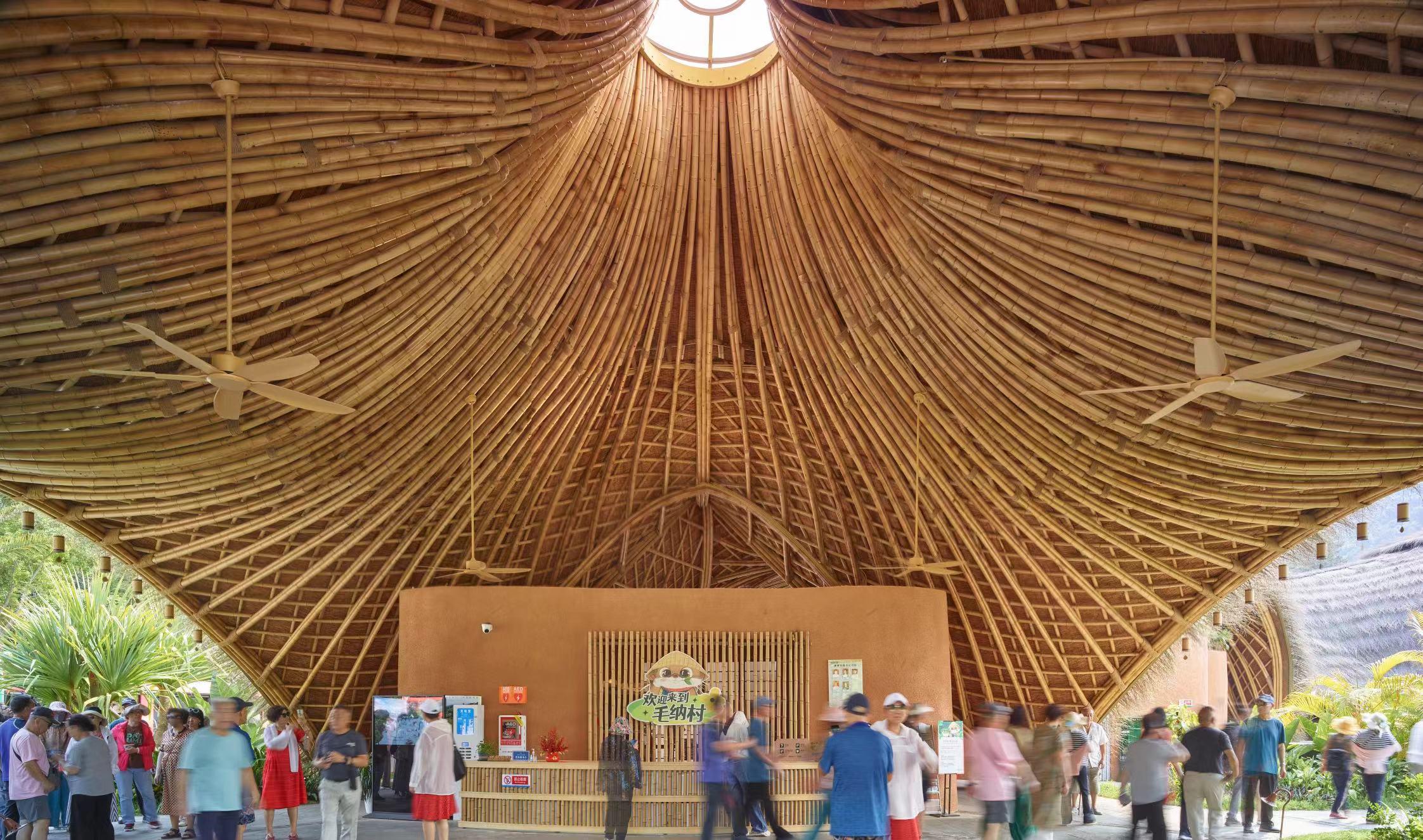走进村口,别致的建筑让人眼前一亮。海南毛纳村民中心整体采用了竹子加外围的竹梢结构打造而成,整体结构使用3万余根竹子来建造。每根竹子经过高温加工后,由笔直变弯曲,竹子经过特殊处理,具有经久耐用的特点。