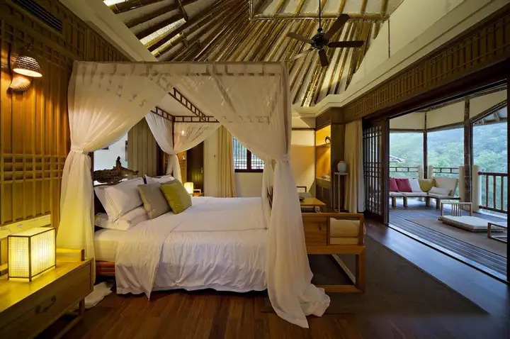 十字水生态度假村是美国国家地理杂志推介的全球五十大生态度假村之一,也是国内生态旅游发展的模范,最大限度地做到生态环保,同时也是高品位的度假胜地。在全球化的今天,我们已经被“现代主义”所包围,西方的建筑和价值观充斥着我们的视野,娱乐着我们的感官,慰藉着我们的心灵,我们已经淡忘了建筑作为一种地方性生活方式的存在,也忘记了千百年来祖先曾遵行的“人作为自然的一部分并依存于自然”的生活美学 。与此同时,各种豪华酒店度假村的建造,为了舒适、方便而过量浪费能源、制造大量废物、破坏环境,造成无法挽救的损失。面对这一切,我们以一个设计师的热忱、努力和责任心脚踏实地的实践了一个高端生态度假村的案例,历时四年,待到山野葱翠时,竹别墅,终于绽放。