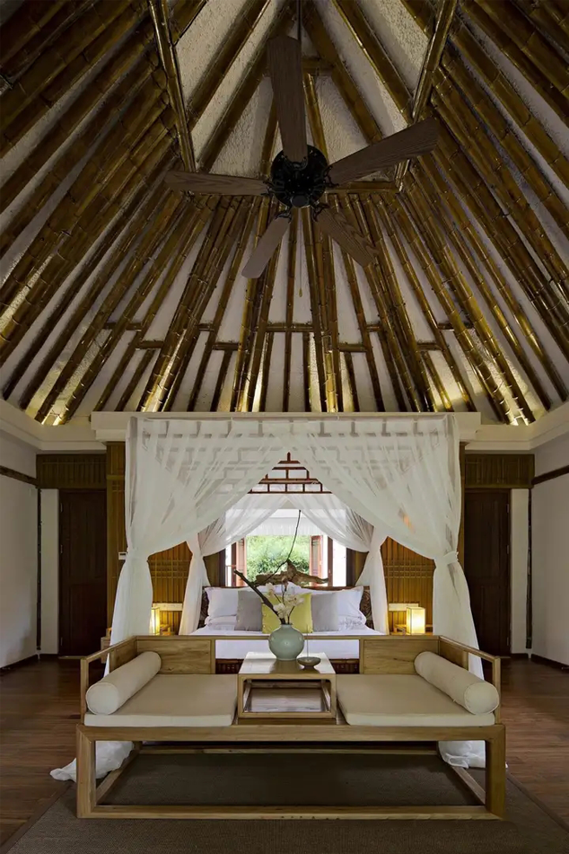 竹别墅建筑最初由哥伦比亚建筑师西蒙(Simon Velez)设计,这位毕生都在探索生态建筑的建筑大师为十字水带来了堪称经典的竹结构建筑群,共生形态承接室内设计工作后,在解读大师建筑设计的基础上对原方案进行了地方性的改造,融入了当地的建筑文化与元素,并增加了客家民居式的后院 .