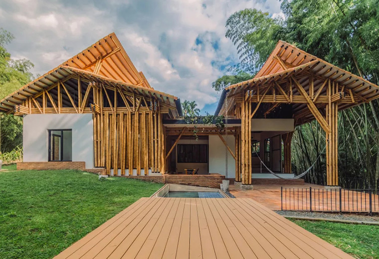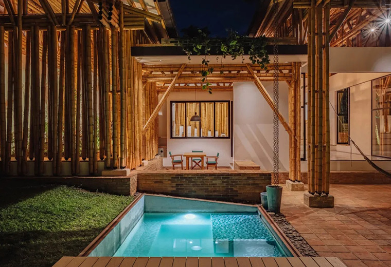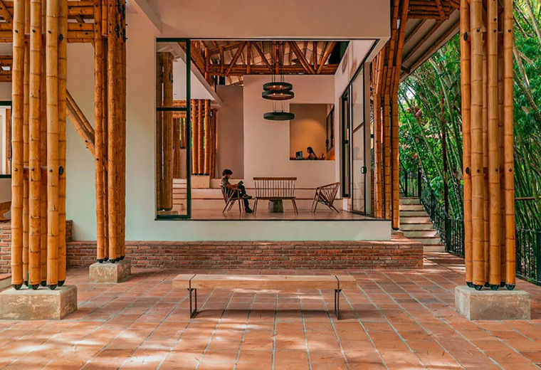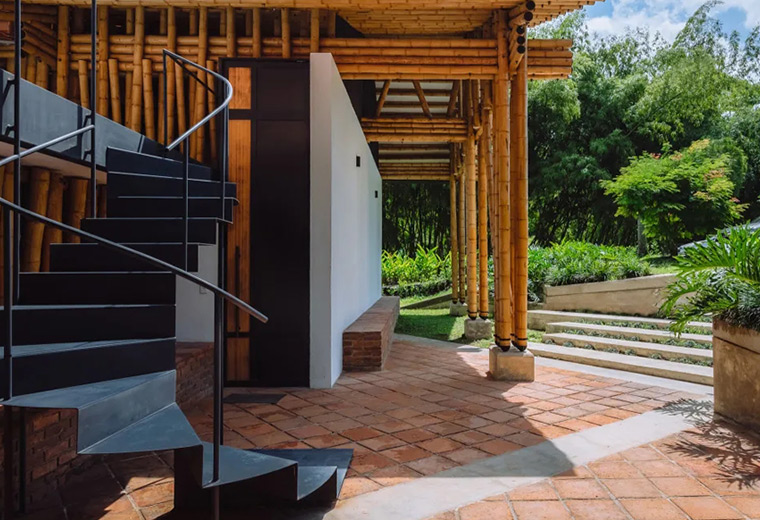 Milguaduas利用自然资源,在材料和布局上营造一个可持续的环境,从而减少对环境和能源的影响。该设计只选择了五种材料作为它的语言:当地采购的Guadua、纯净的白墙、浇筑的混凝土、焊接的黑色金属和烘烤的粘土。在它们的纯粹性中,这些材料具有单色和丰富的纹理色调。通过建立屋顶和覆层之间的独立性,以及屋檐和可居住屋顶的错位,使室内可以利用自然光和通风。