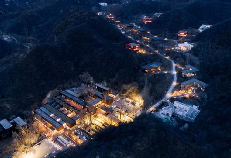在通往公社狭窄而悠长的小路上,左边是飞机场、家具屋、手提箱;前方是怪院子、红房子;远处是大通铺、三号别墅、竹屋、双兄弟森林小屋、土宅、俱乐部。每一栋别墅都可以看到未经修复的古老长城,每一段线条和结构都浸润着设计师的最朴素也是最大胆的设计构想。