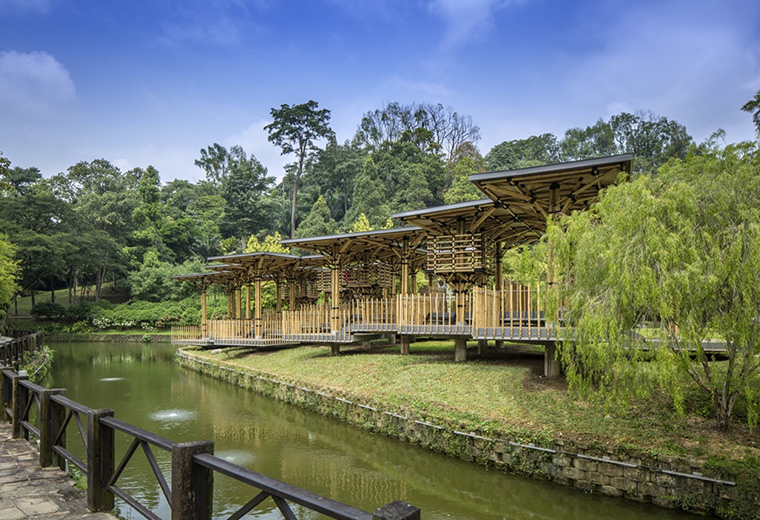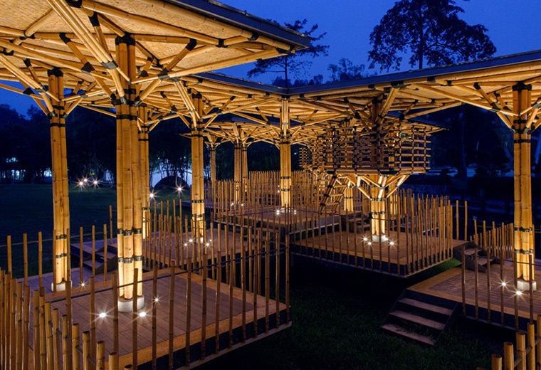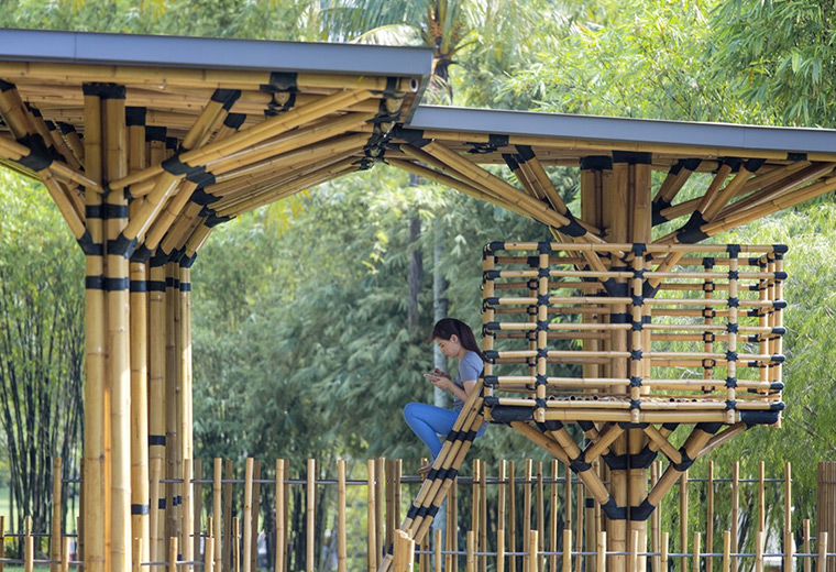竹游乐场是一个公共设施,位于吉隆坡最古老的,可以说是风景最美丽的公园——Perdana植物园里。公园坐落在首都的心脏位置,很受当地人和游客的欢迎。这个竹苑本身是坐落在一个穿过公园的中心的大湖上的一个小岛上。竹子在马来西亚当代建筑的使用是非常少见的,这个建筑就是要探索其潜在可持续的建筑材料。